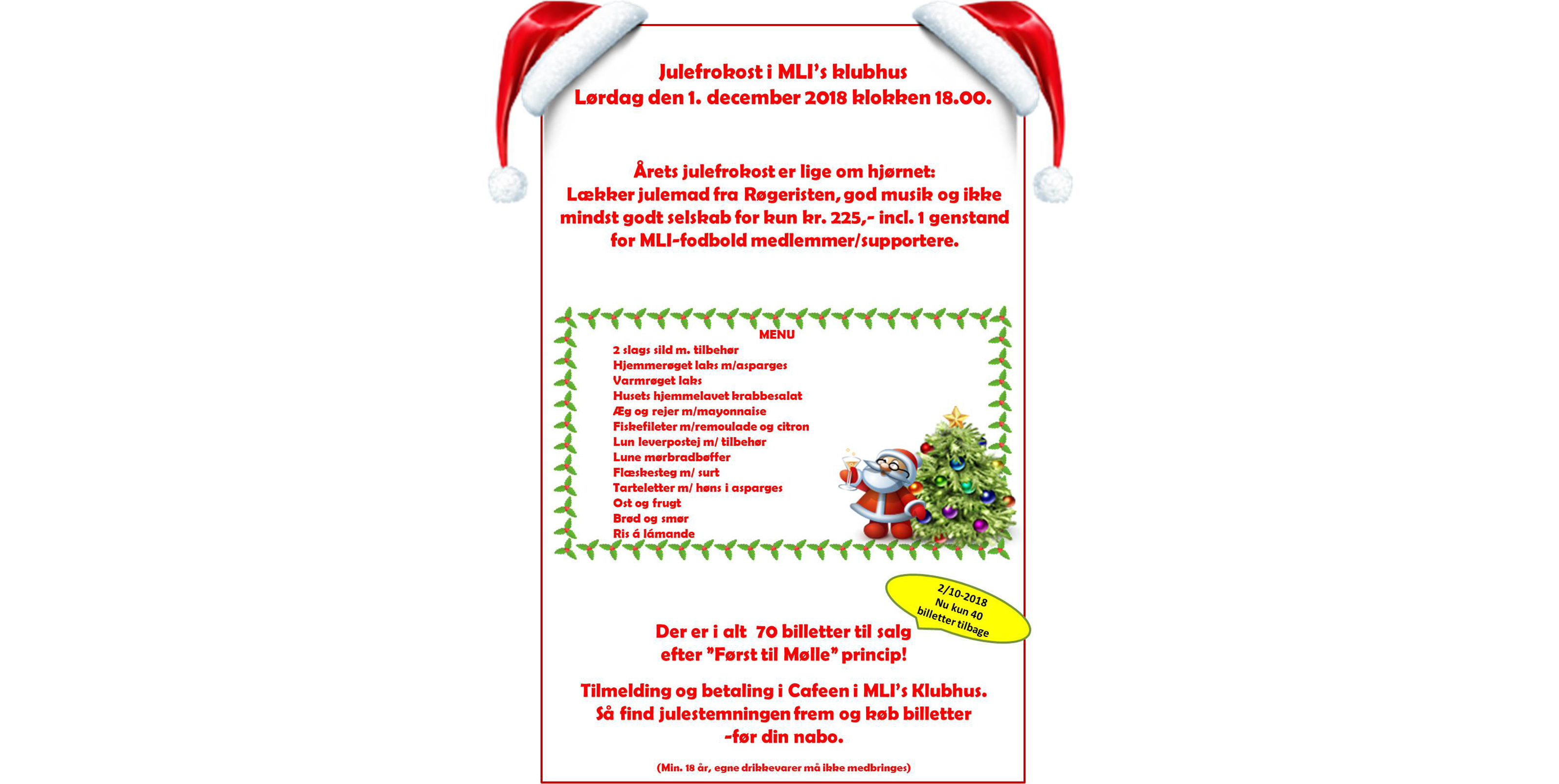 Julefrokost i klubhuset "sidste frist for Billetkøb 10. november 2018!"