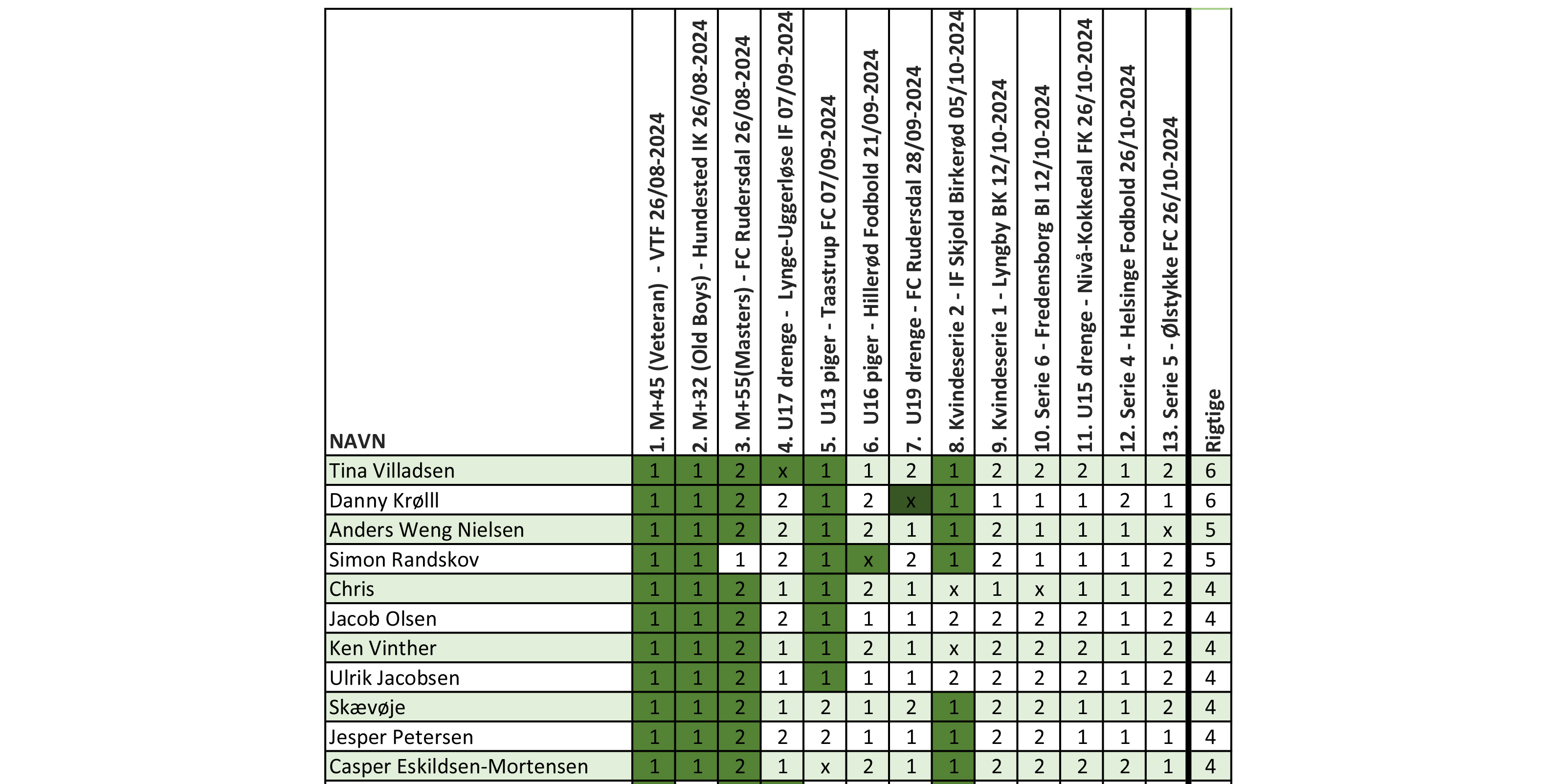 TIPS Efterår 2024 stillingen efter 8 kampe.