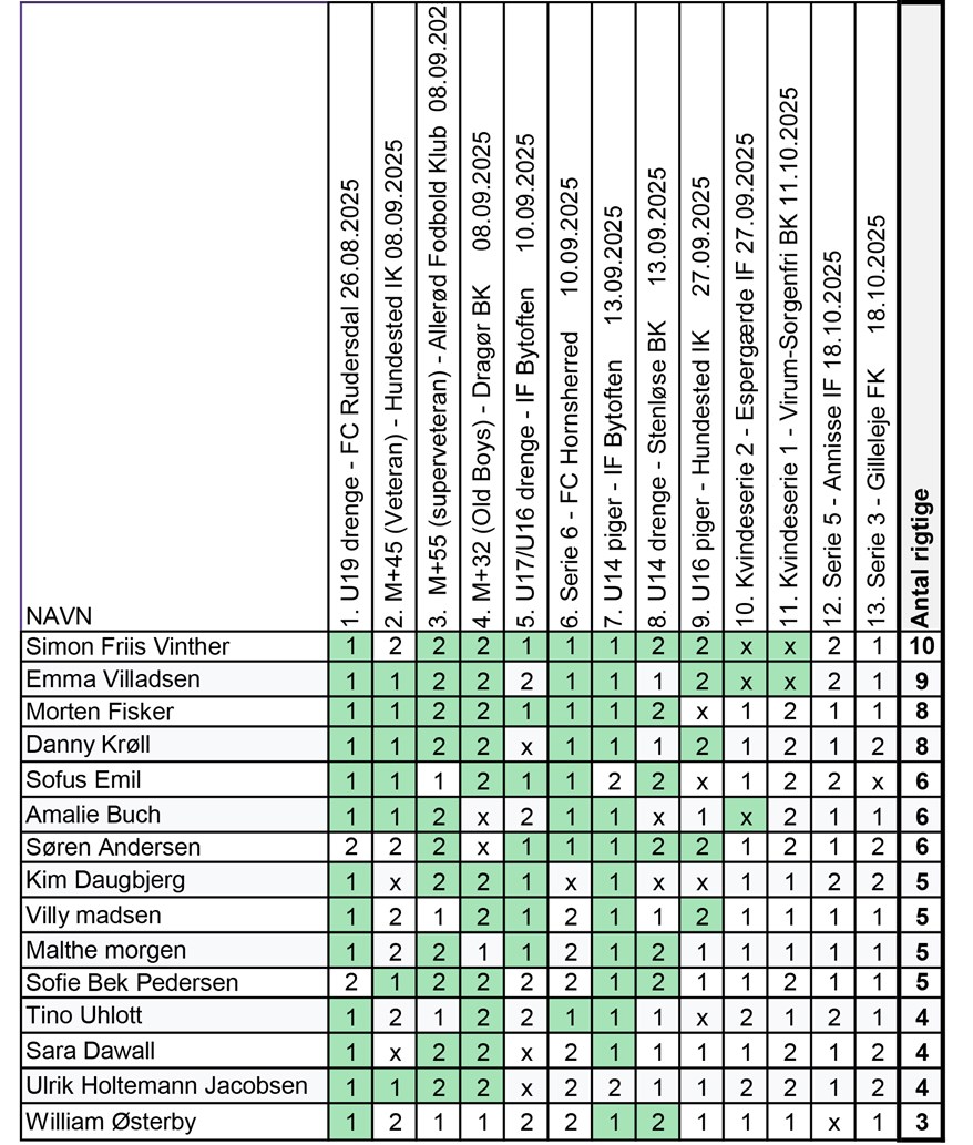 TIPS Efterår 2025 stillingen efter 11. kampe