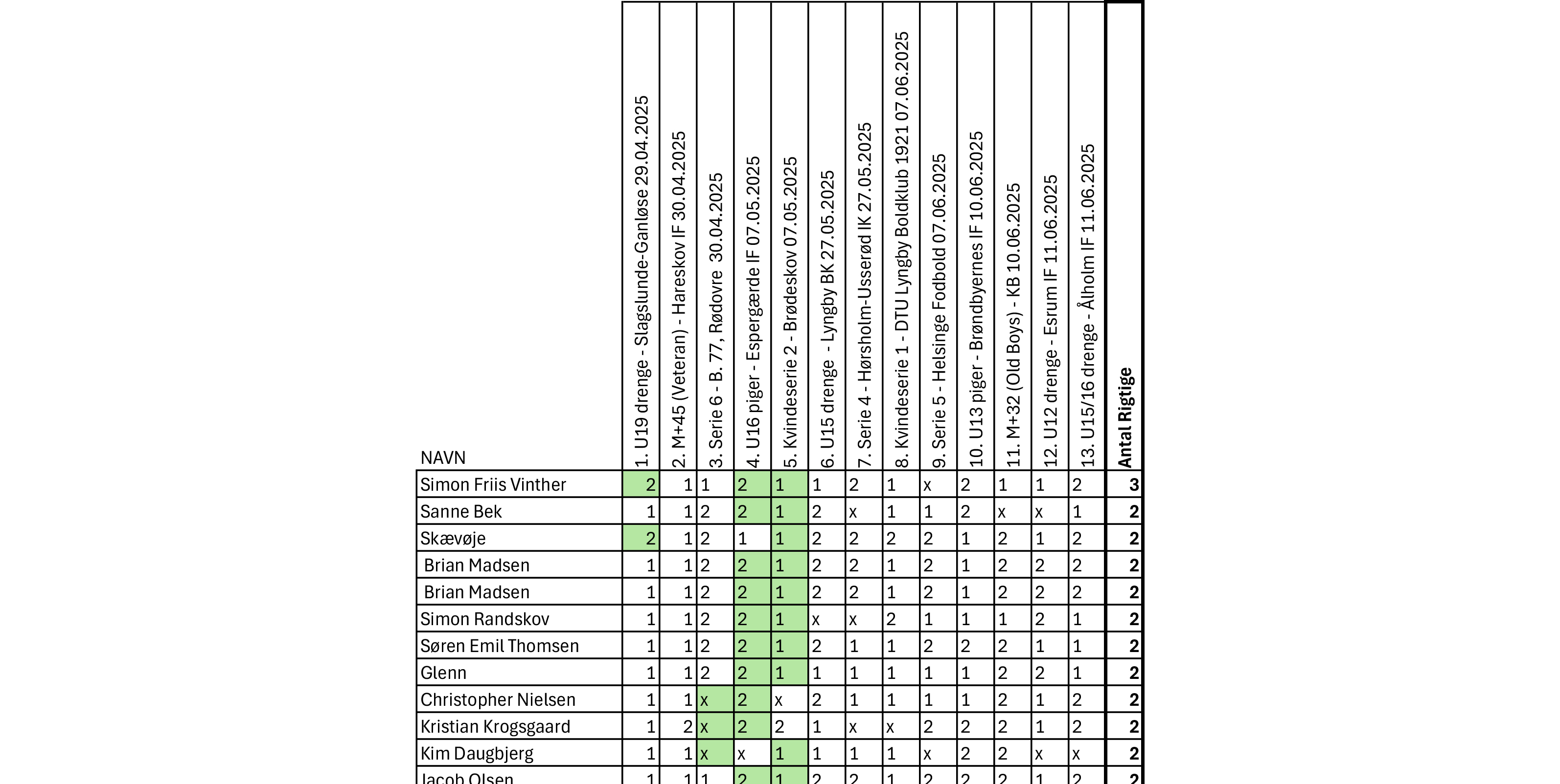 TIPS Forår 2025 stillingen efter 5. kampe