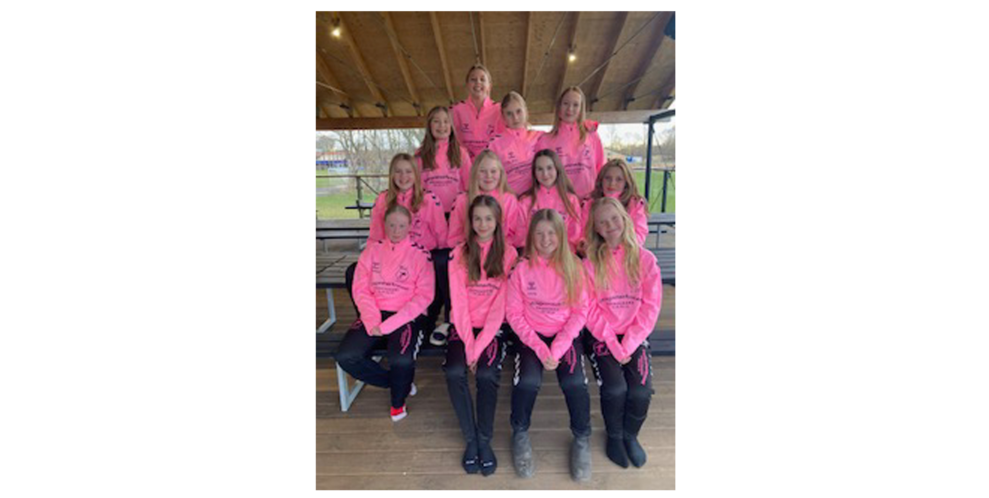 U pige 13 er meget glade for deres nye træningsdragter. Tak til Krogsgaard.